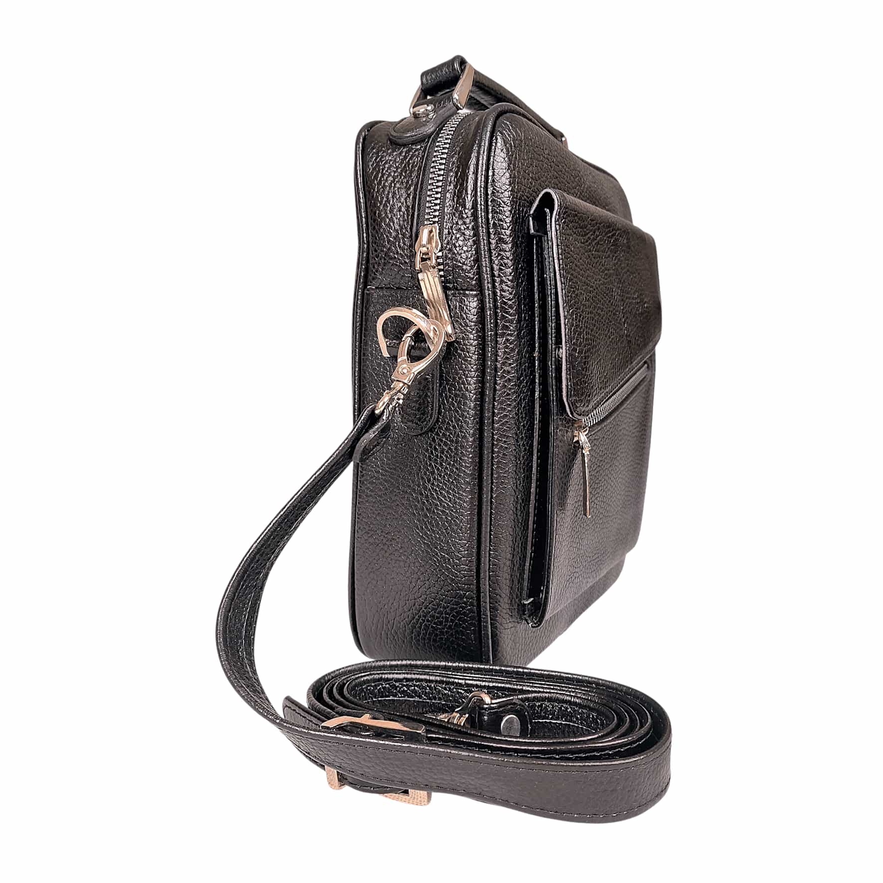 این کیف با طراحی ساده و کاربردی، از چرم طبیعی باکیفیت ساخته شده و در ابعاد مناسب ۲۰×۲۵ سانتیمتر عرضه میشود.
