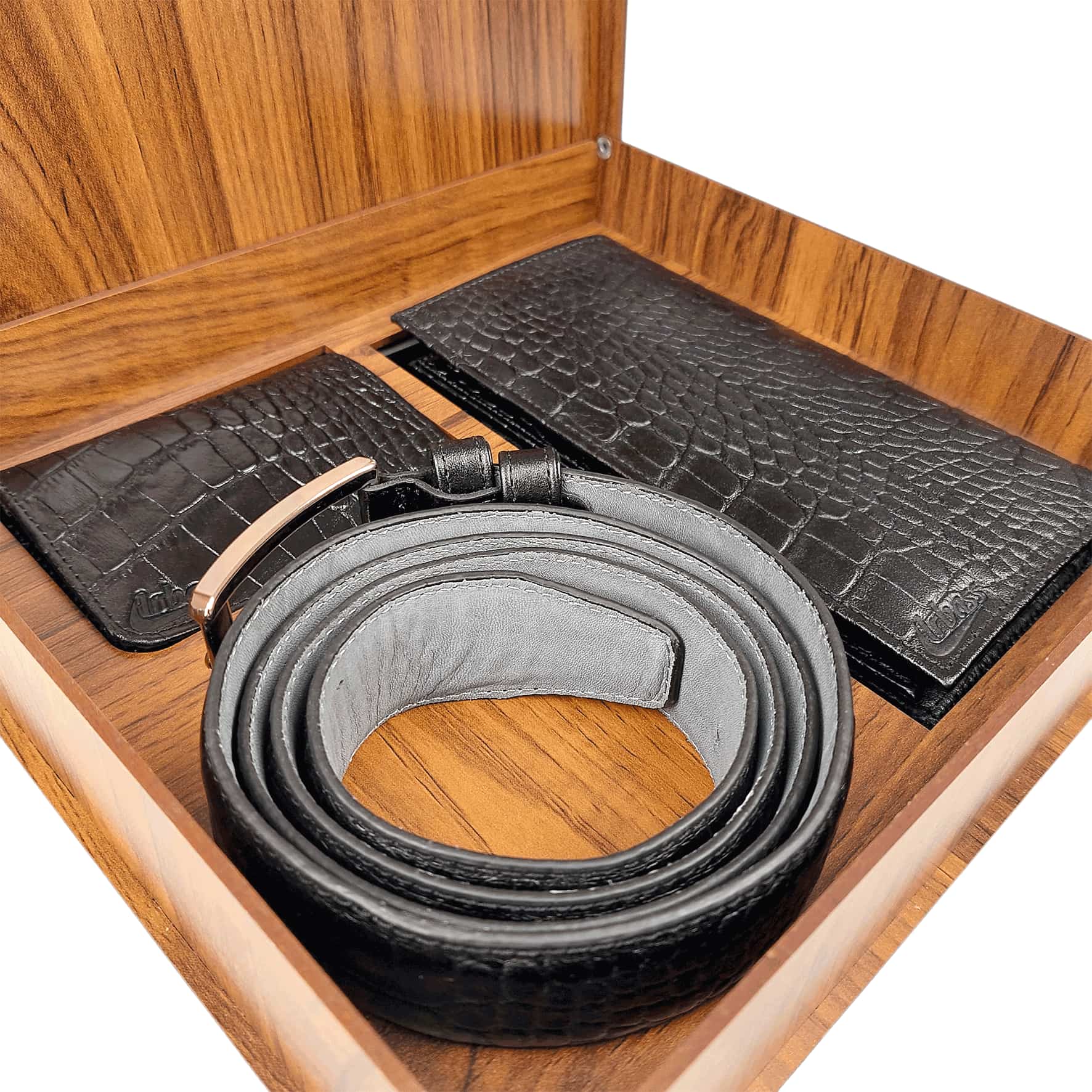 اگر بهدنبال یک هدیه شیک و کاربردی برای آقایان هستید، کد AR3012 یک ایدهآل انتخاب شده است. این مجموعه شامل کیف پول کتی، جاکارتی و کمربند مردانه از چرم طبیعی باکیفیت بوده و در یک جعبه چوبی شکیل و باارزش میشود.