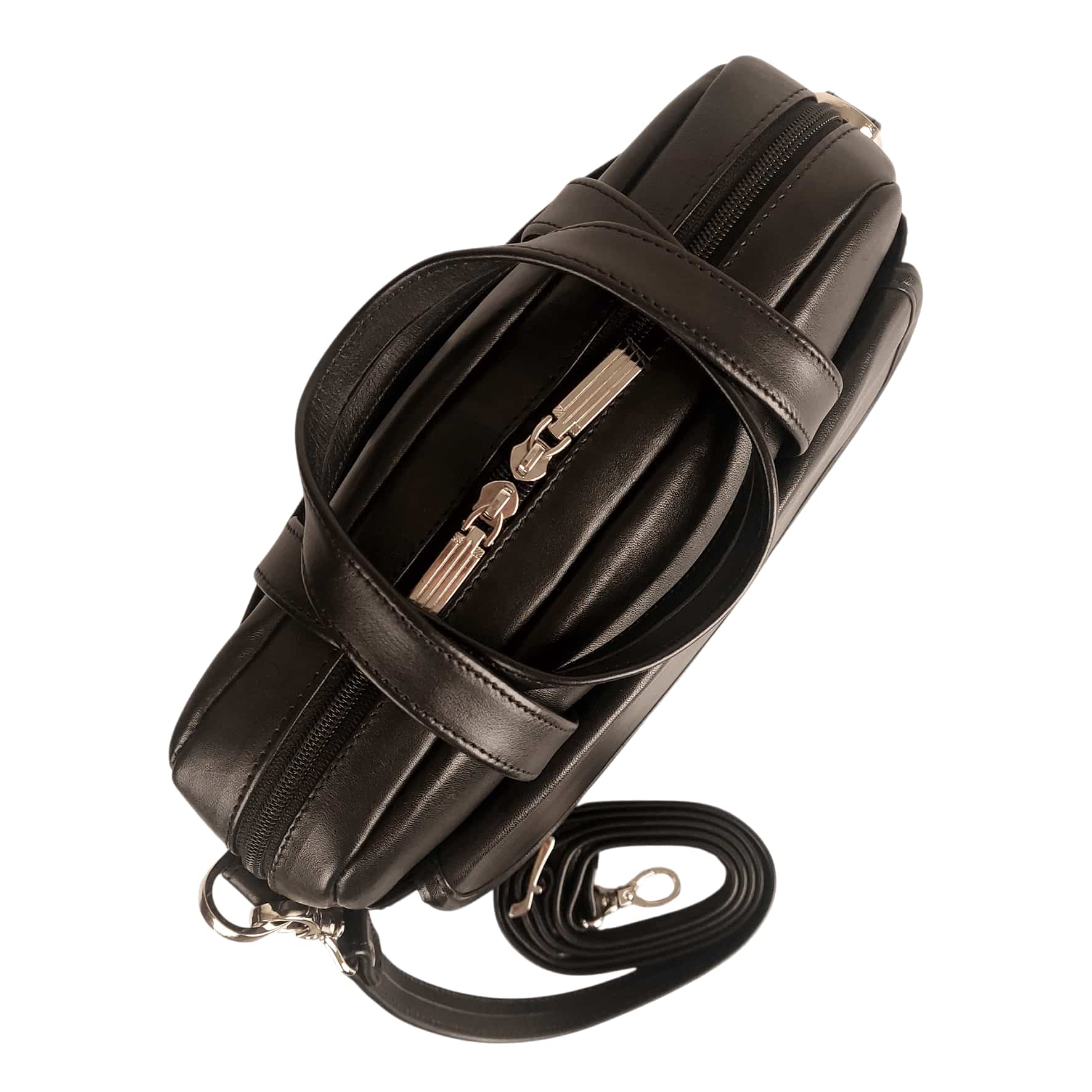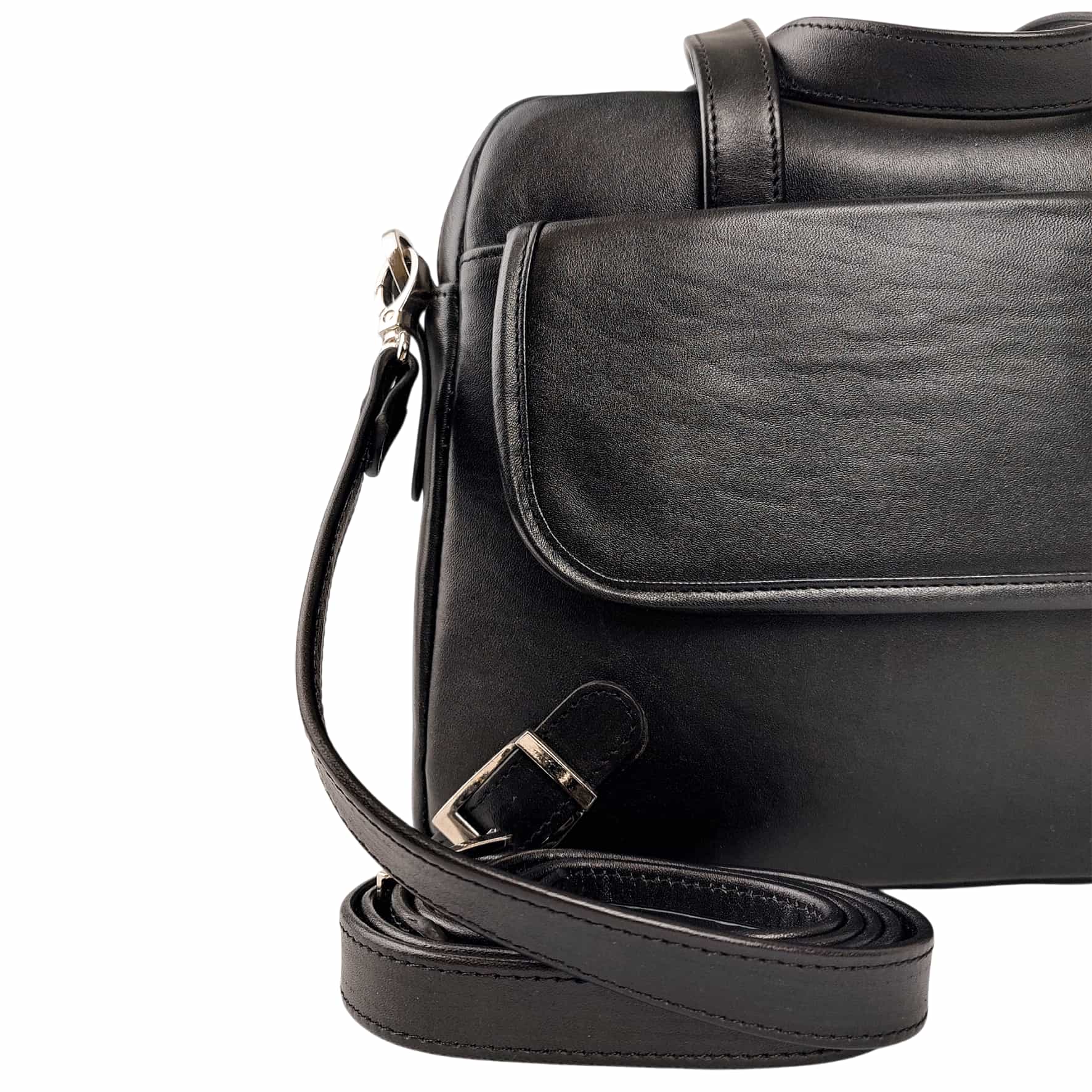 بند چرمی کوتاه برای استفاده دستی و بند بلند جداشونده برای حمل دوشی، به شما آزادی انتخاب در استایل میدهد.